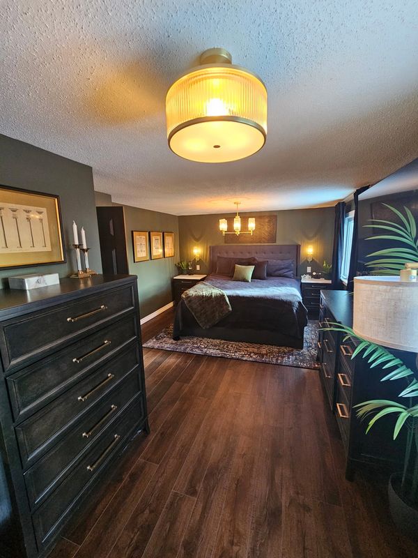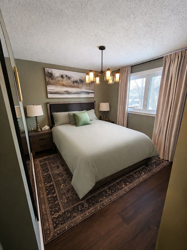 In the kitchen, a clean, modern refinishing elevated the overall tone of the home, creating a strong focal point that balanced the otherwise modest updates. Bedrooms were refined through decluttering and subtle styling to enhance scale, function and market appeal without introducing new elements.